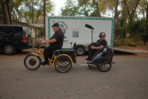 PPS. Attached are few random shots from recent shoots. That’s Sarah, of course, producing and co-hosting at the same time, even as she doesn’t fall off a bike while look fabulous. Below is Rusty The Bike Guy in Florida, chauffeuring my loyal soundman to nowhere in particular, and Lenzy, whose story you’ll have to hear to believe, and Judaline, a tiny plumber in Staten Island that’s making a BIG difference. More later…